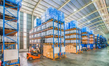 A warehouse for a shipping company is a large storage facility where goods and products are received, stored, and dispatched.